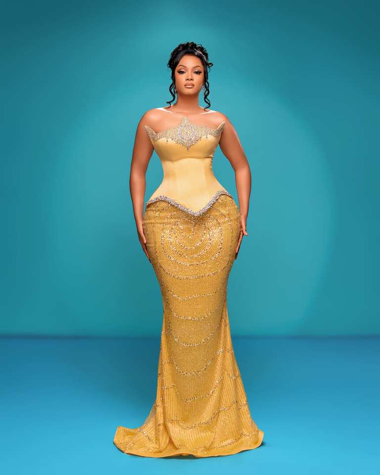 Vestido de Noche Largo Estilo Sirena con Bordado Dorado Glamuroso, Escote Alto, Decoración de Cristal, Sujetador Incorporado, Lujoso y Formal
