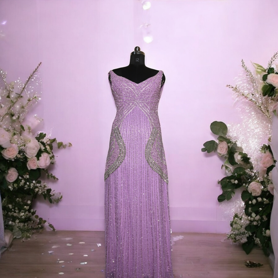 Glamoroso Vestido de Noche Rosa para Damas con Silueta Larga, Pedrería Brillante y Escote en V, Ideal para Fiestas