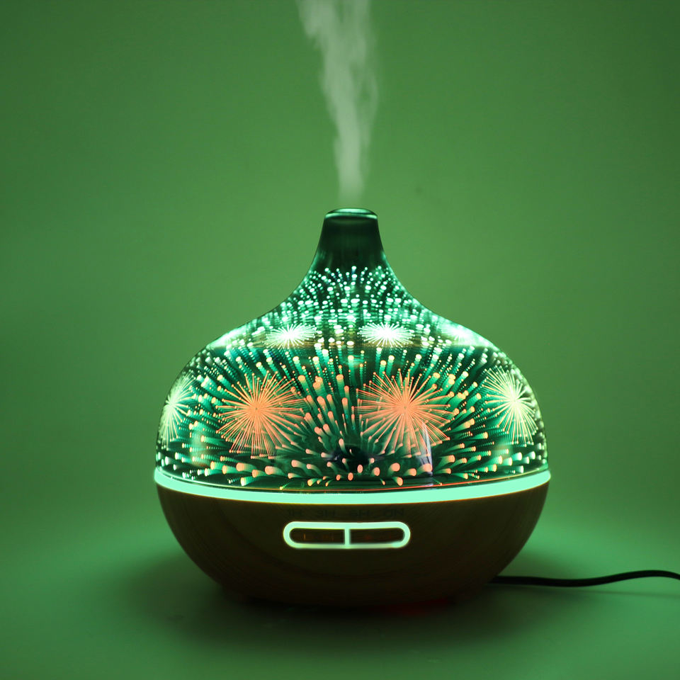 De Aroma de vidrio difusor con increíble 3D efecto Visual en la noche de fuegos artificiales patrón de diferentes de grano de madera Base de colores