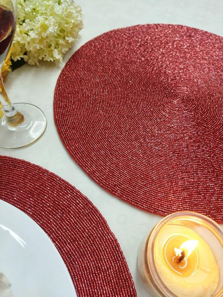 Manteles Individuales Redondos de Cuentas de Vidrio, Vajilla para Mesa de Comedor, Diseño para Fiestas y Bodas