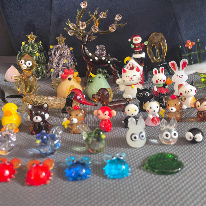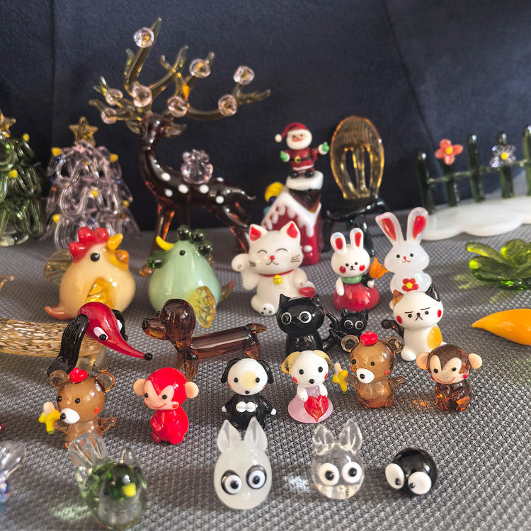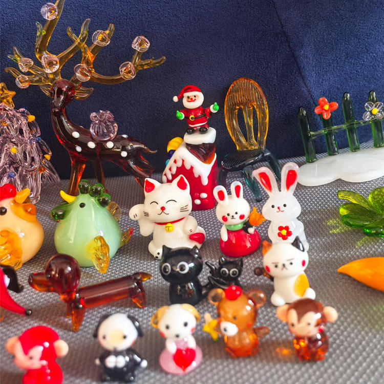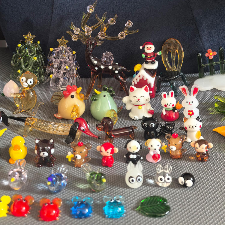 Figura de cristal de oso, conejo, cangrejo, gallina, árbol de Navidad, Papá Noel, perro, gato de la suerte, mono, ciervo, silla, casa de Navidad, pájaro, zanahoria, hoja, rana, pato