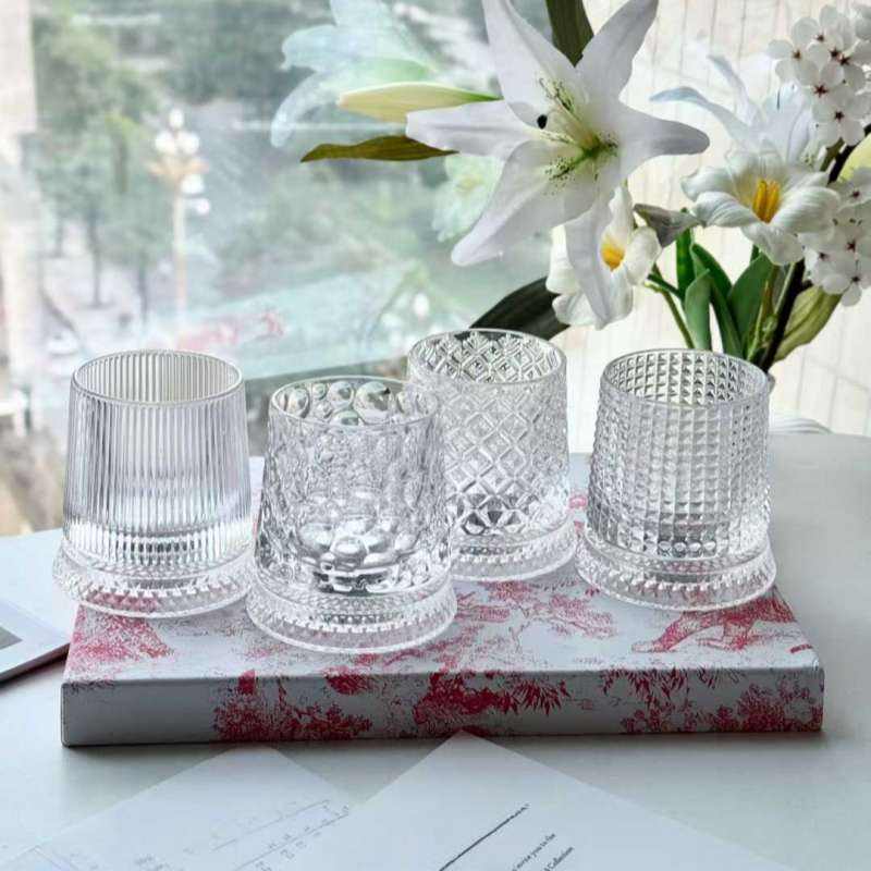 Juego de Vasos de Vidrio, 4 Piezas, Patrón en Relieve Mixto, Vasos Giratorios, Juego de Regalo para Whisky, Agua y Uso Diario, Juego de Regalo de Lujo
