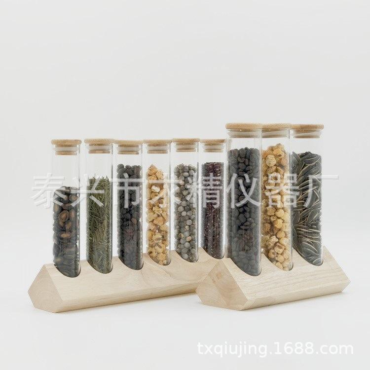 Glass Jar Display Rack With Wooden Base For Coffee Beans Dried Flowers Tea Leaves Storage Cylinder Shape Transparent Sealing