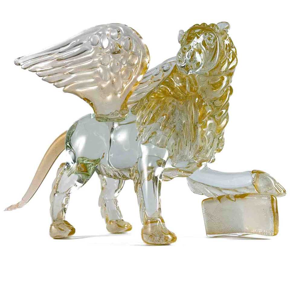 Escultura de León de Vidrio Soplado a Mano con Base de Bambú, Diseño de Flor Eterna, Arte Folclórico Personalizado