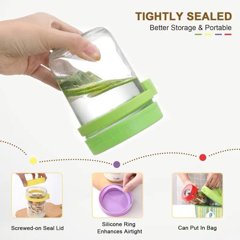 Contenedores de vidrio para el almuerzo y el desayuno, recipientes de yogur con tapas de avena de 16 oz, juego de tarros de contenedores de avena durante la noche