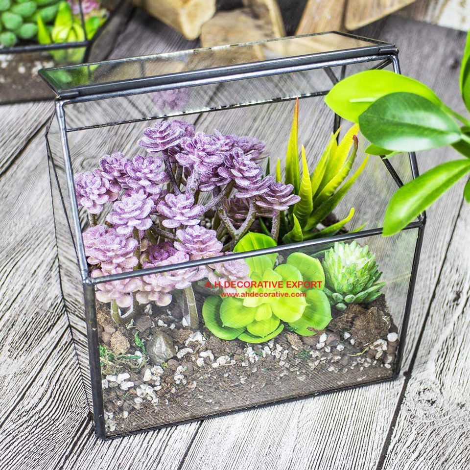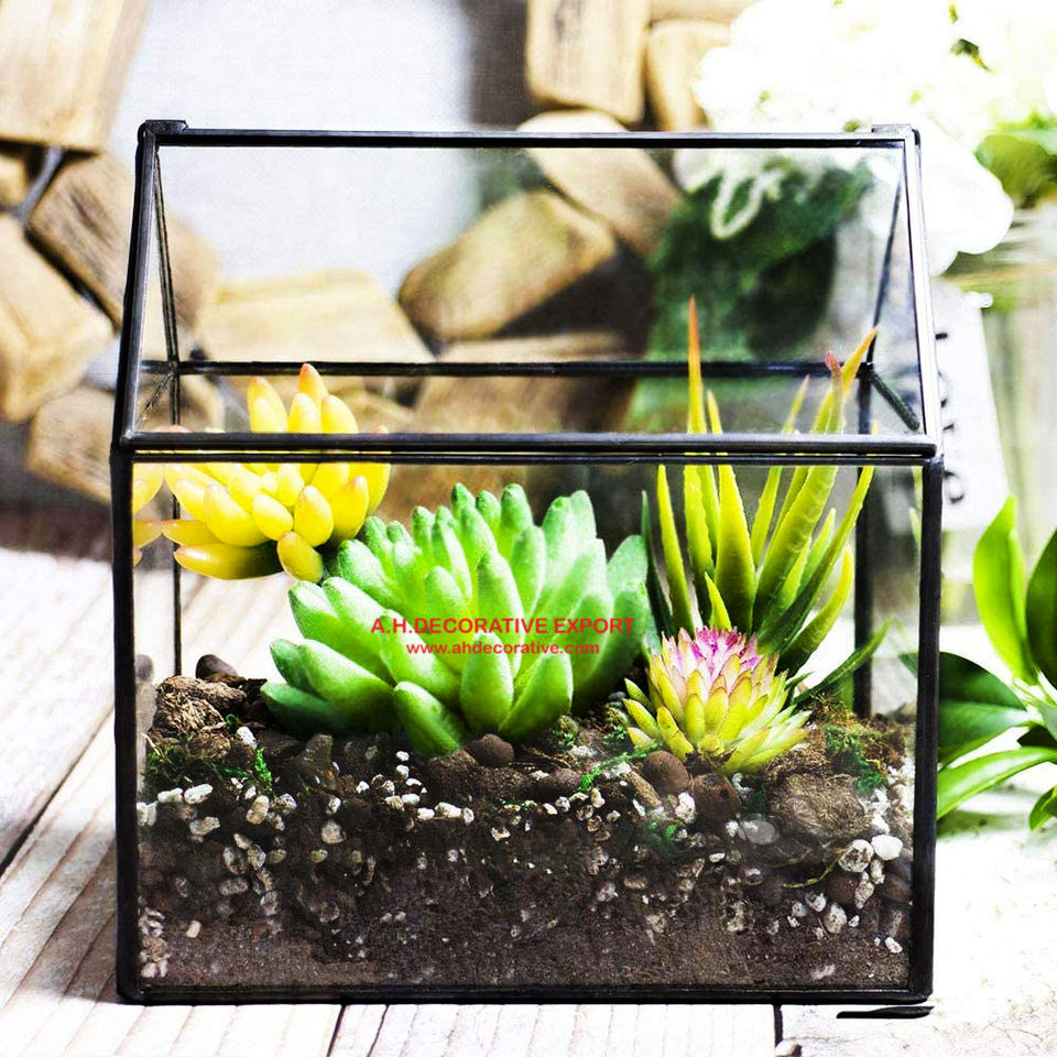 Terrario de cristal con forma de casa para flores, caja de exhibición para plantas suculentas, contenedor de decoración moderna de mesa