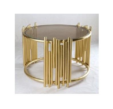 Glass Top Modern Design Coffee Table New Round Shape with Golden Bottom Border Iron Frame Indian Handmade Factory Price