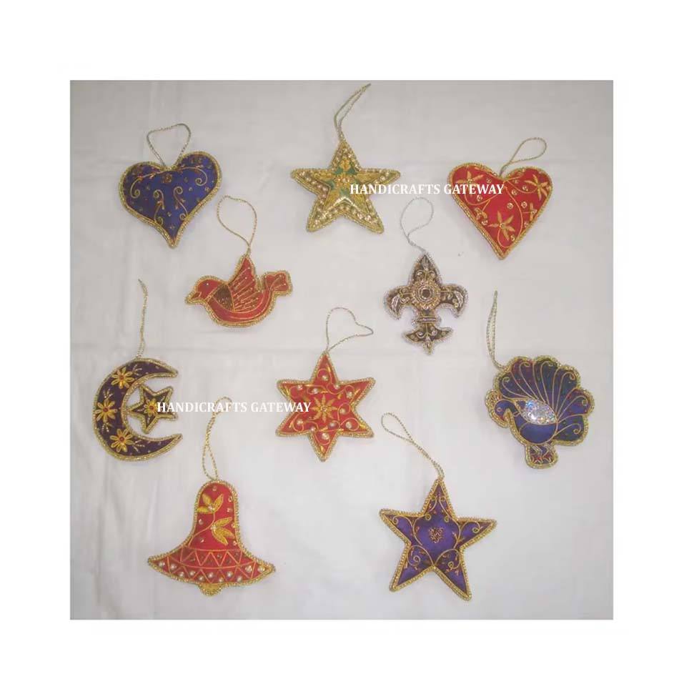 Adorno de árbol de Navidad con forma surtida de purpurina, colgador de Material de tela colorida para decoración, diseñada con cuentas, bordado de Zari
