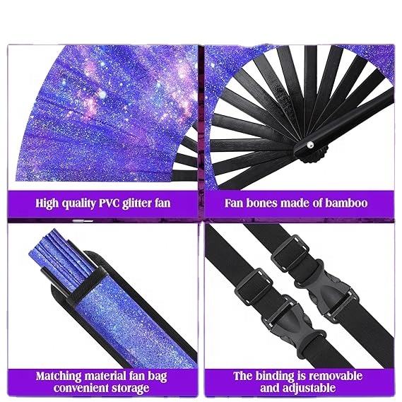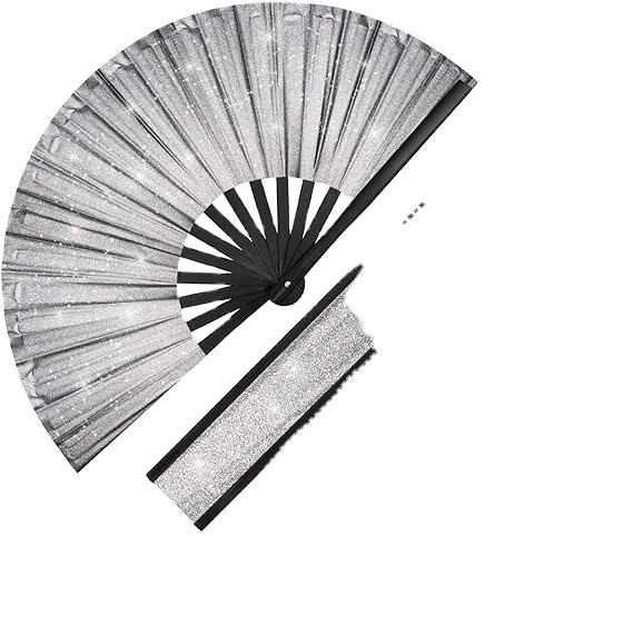 Abanico Plegable Grande con Brillantina, Accesorio para Fiestas, Baile, Música, Decoración, Festivales Rave, para Hombres y Mujeres