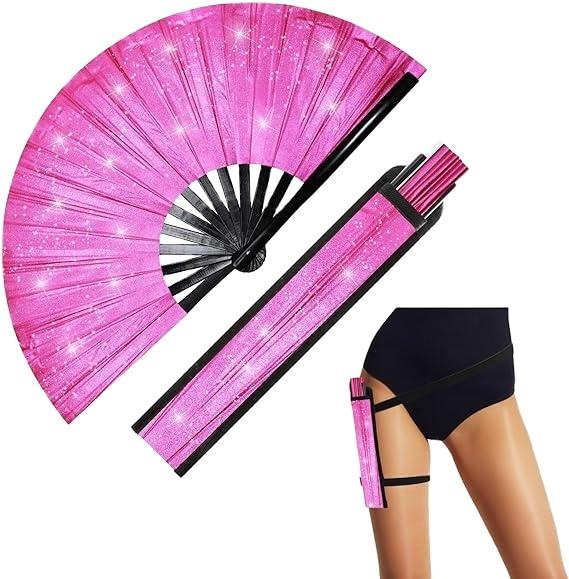 Abanico Plegable Grande con Brillantina, Accesorio para Fiestas, Baile, Música, Decoración, Festivales Rave, para Hombres y Mujeres