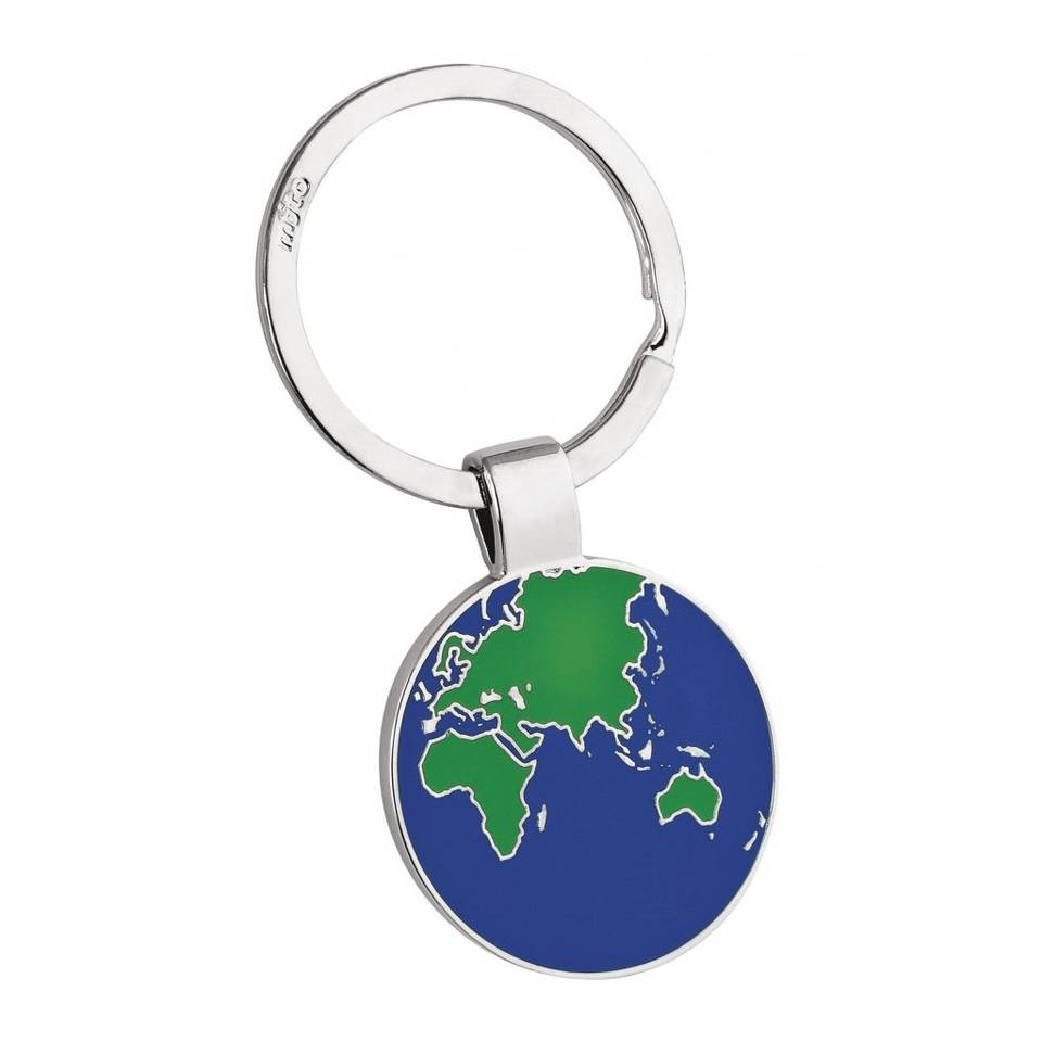 Llavero con Mapa del Mundo, Diseño de Eurasia, África y Australia, en Tono Plateado, Metal