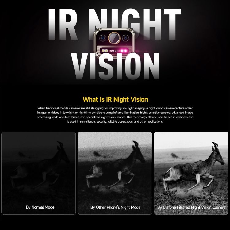 50MP cámara trasera principal + 64MP cámara de visión nocturna