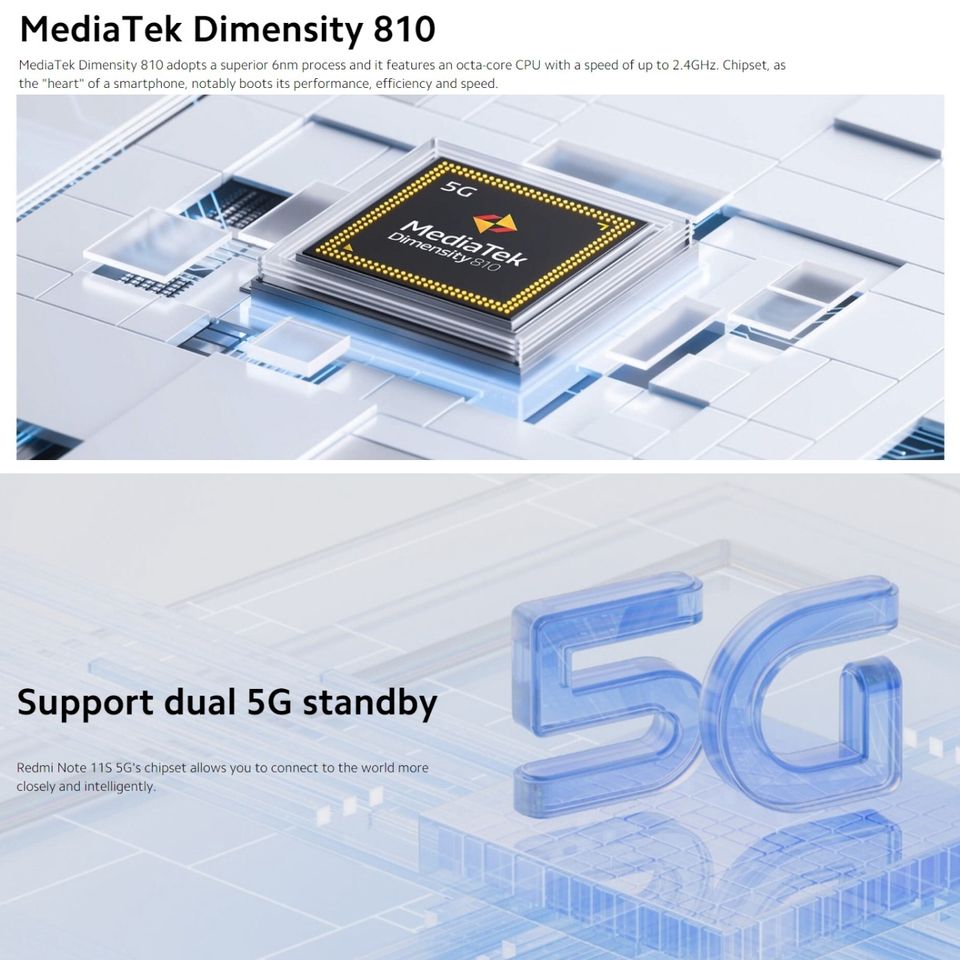 Unidad Central de procesamiento (CPU):MediaTek de la dimensión 810 Octa Core 6nm hasta 2,4 GHz