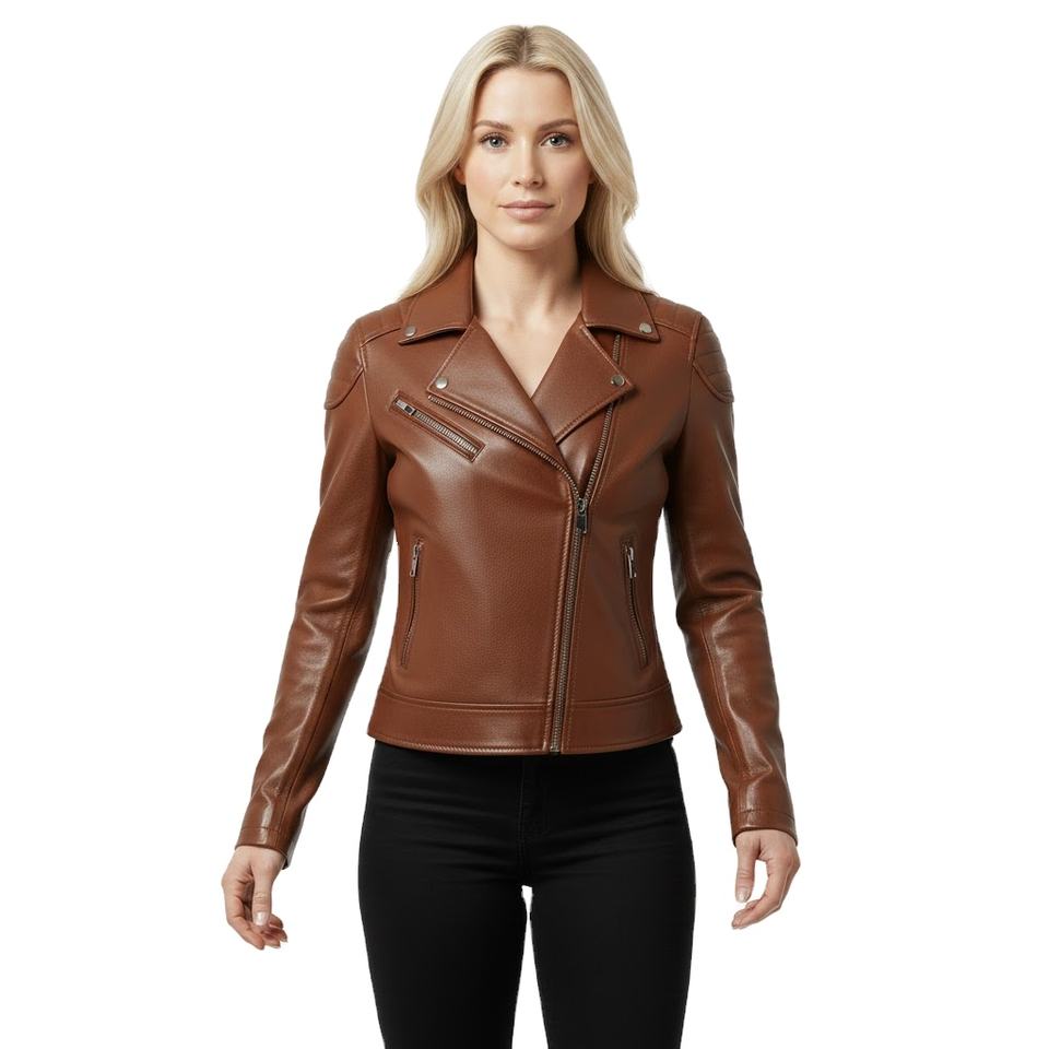 Chaqueta de Motociclista de Cuero Marrón para Mujer al por Mayor Global - Pedido Personalizado - Precio de Fábrica - Chaqueta de Estilo Motero Genuina al por Mayor