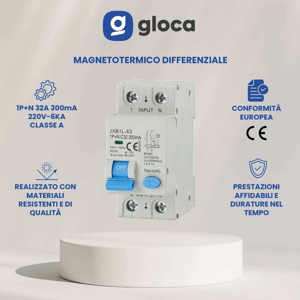 Interruptor Automático Miniatura Gloca Rcbo 1P+N 32A 300mA 220V Curva C 6KA Clase A
