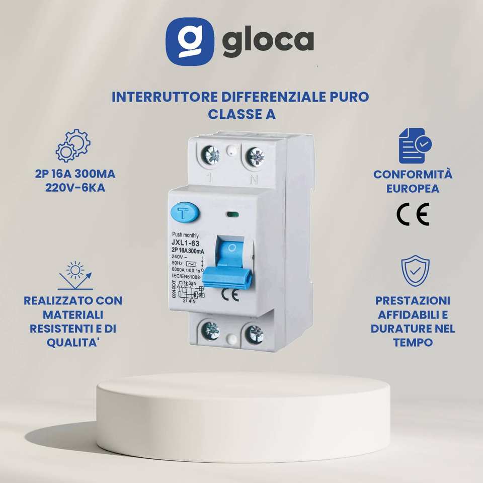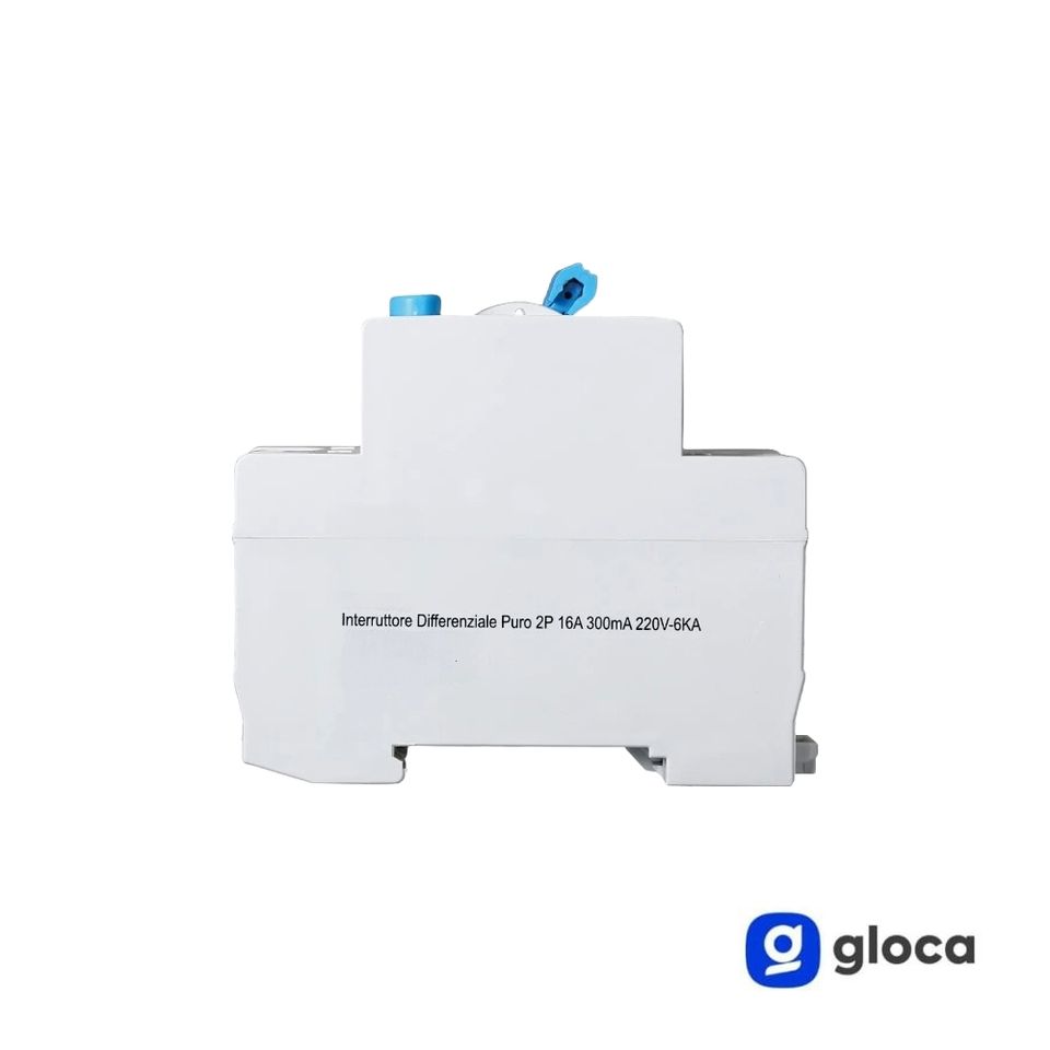 Interruptor Automático Mini RCBO Gloca, 2P, 16A, 300mA, 240V, 50Hz, Clase A, 2 Módulos DIN