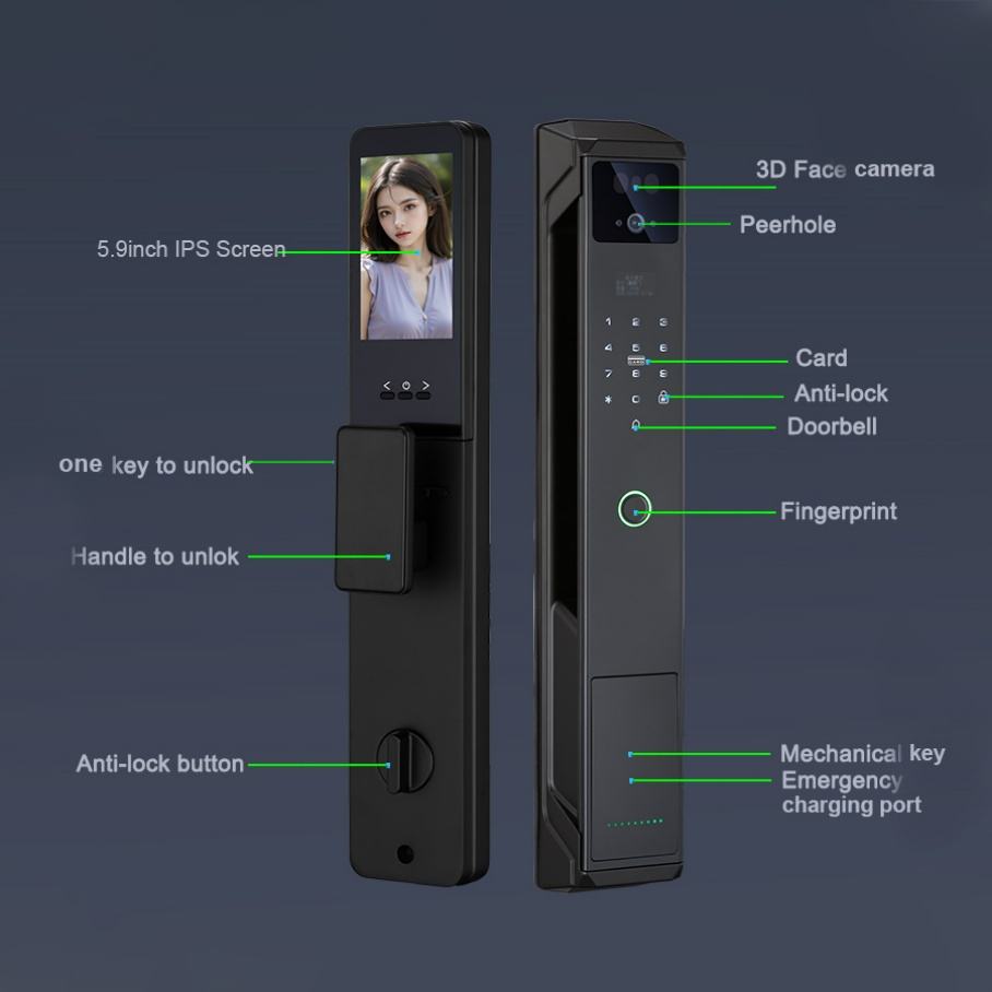 Unlock way:Face+Fingerprint + Password + Card + Key+App