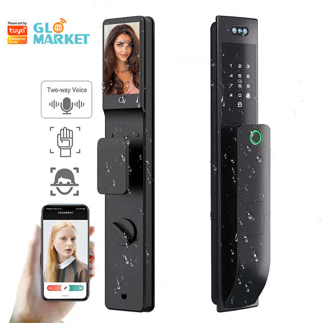 Videoportero Glomarket con Cerradura Digital Automática, Cámara, Reconocimiento Facial 3D, Huella Dactilar Biométrica y Conexión Wifi