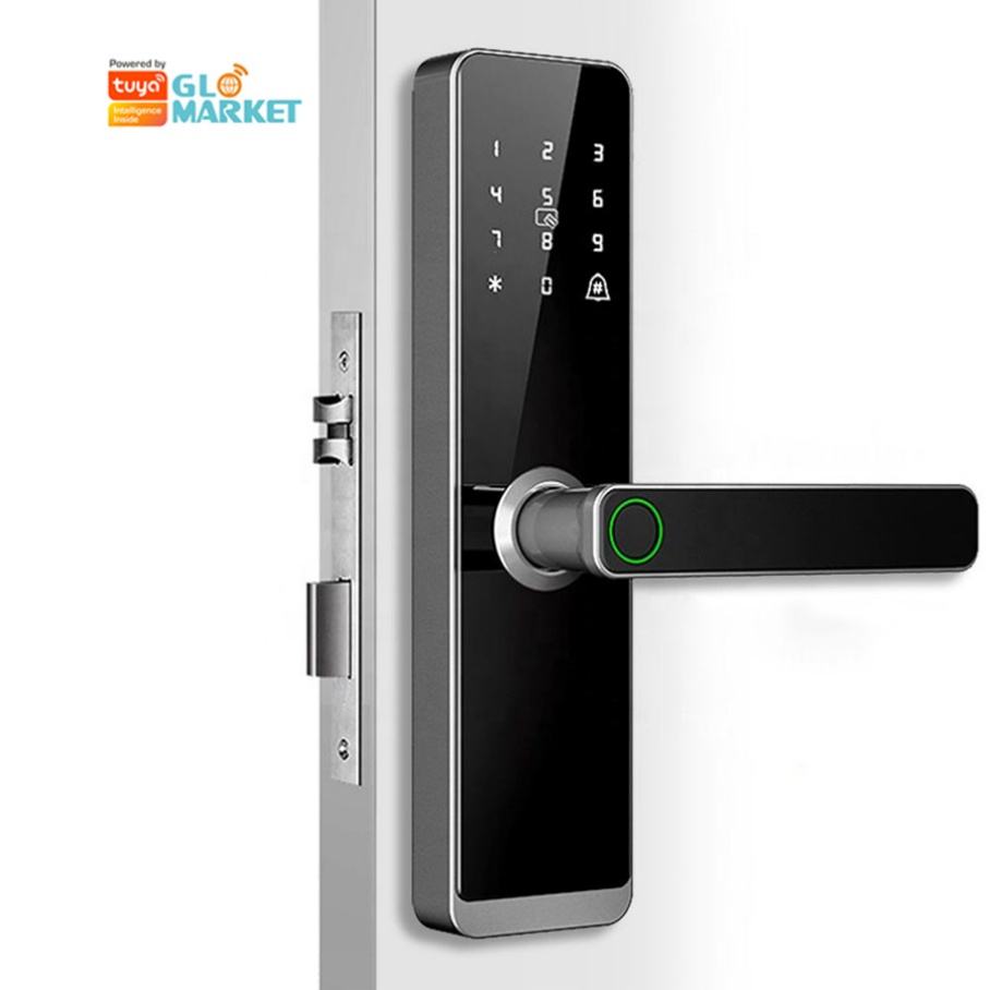 Cerradura Inteligente para Puerta con Huella Dactilar Glomarket, Cerradura Digital sin Llave para Hotel, Aplicación Tuya, Cerradura de Puerta de Aleación de Aluminio con Wi-Fi