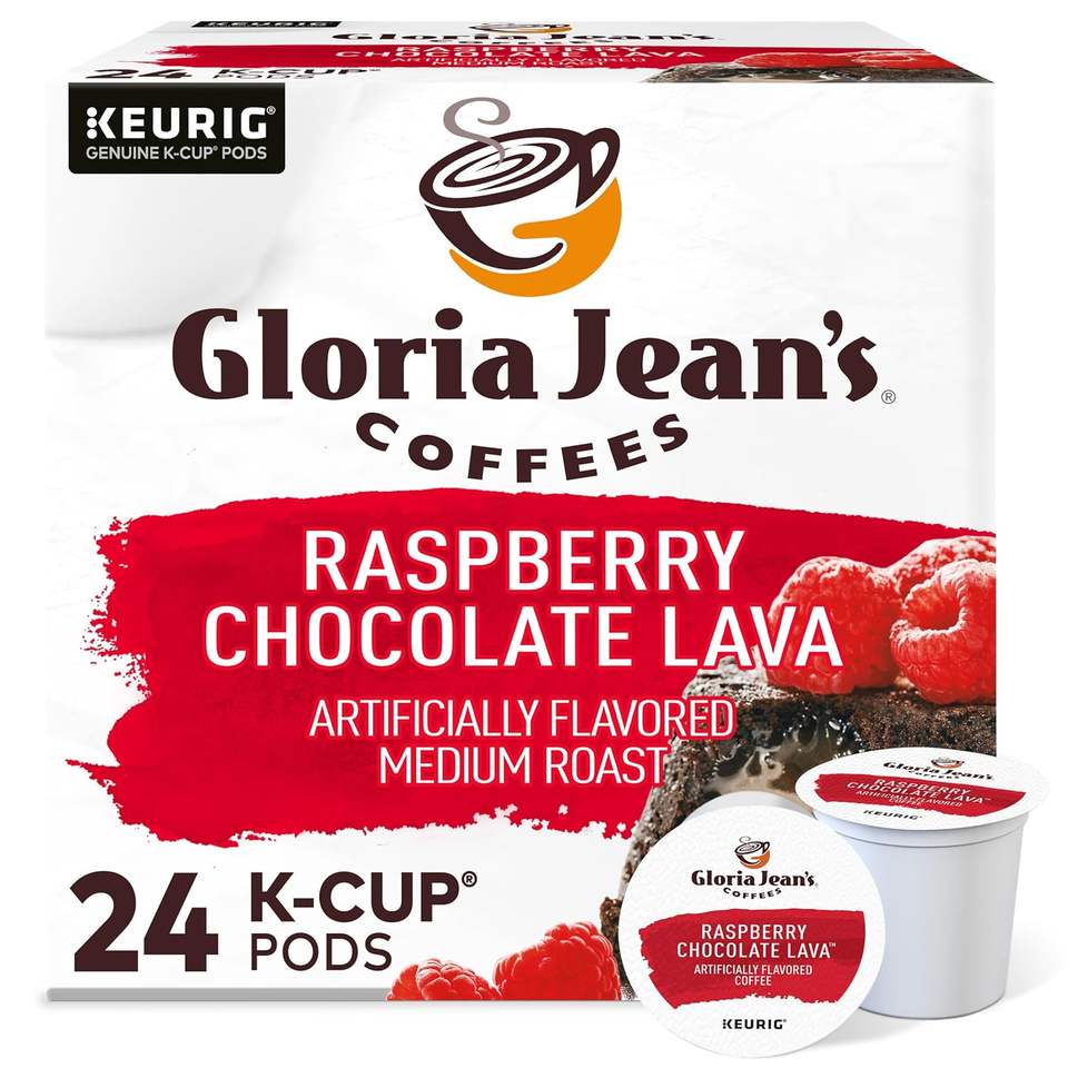 Café Gloria Jean's Coffees Raspberry Chocolate Lava, Cápsulas Keurig K-Cup Individuales, Café de Tueste Medio con Sabor, Paquete de 24