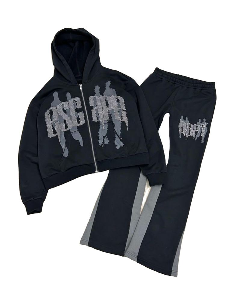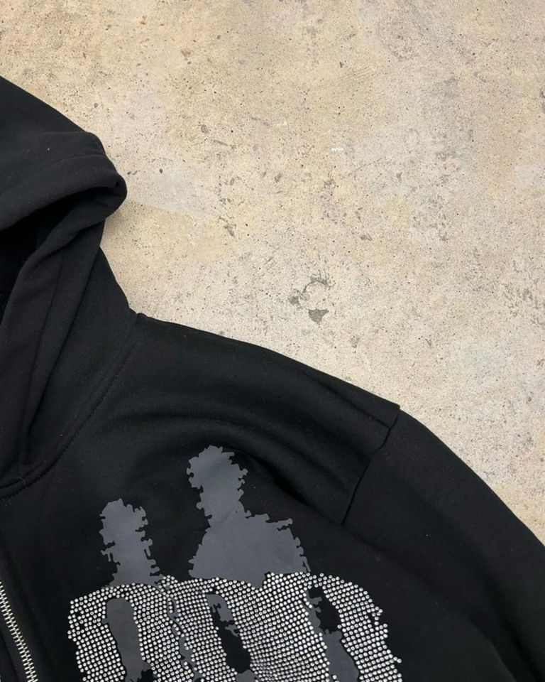 Chándal extragrande con pedrería personalizada Glory, 100% algodón, tejido grueso, con capucha y cremallera, para ropa urbana, unisex.