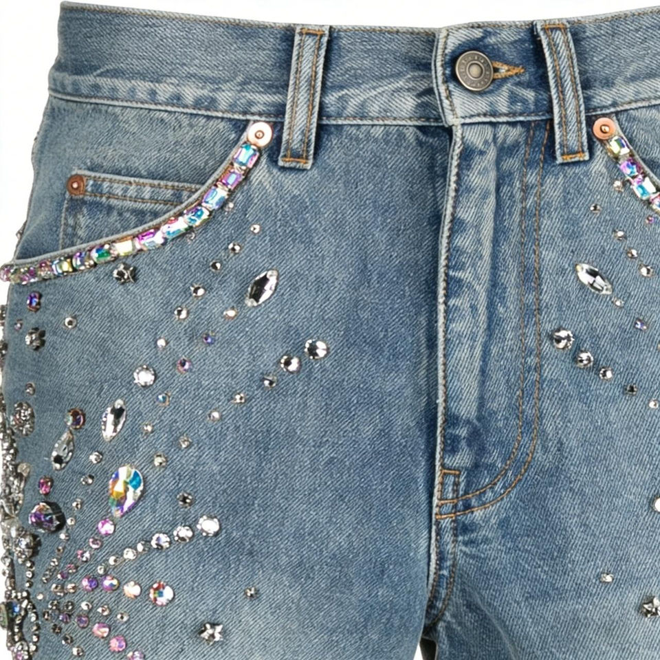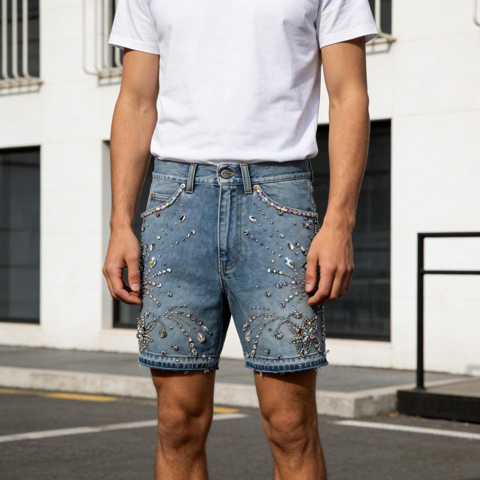 Pantalones Cortos de Mezclilla con Pedrería Glory para Hombre, Alta Calidad, Spandex/Poliéster, Teñido Liso, Deportivos, Secado Rápido, Cintura Elástica, Ropa Formal de Calle