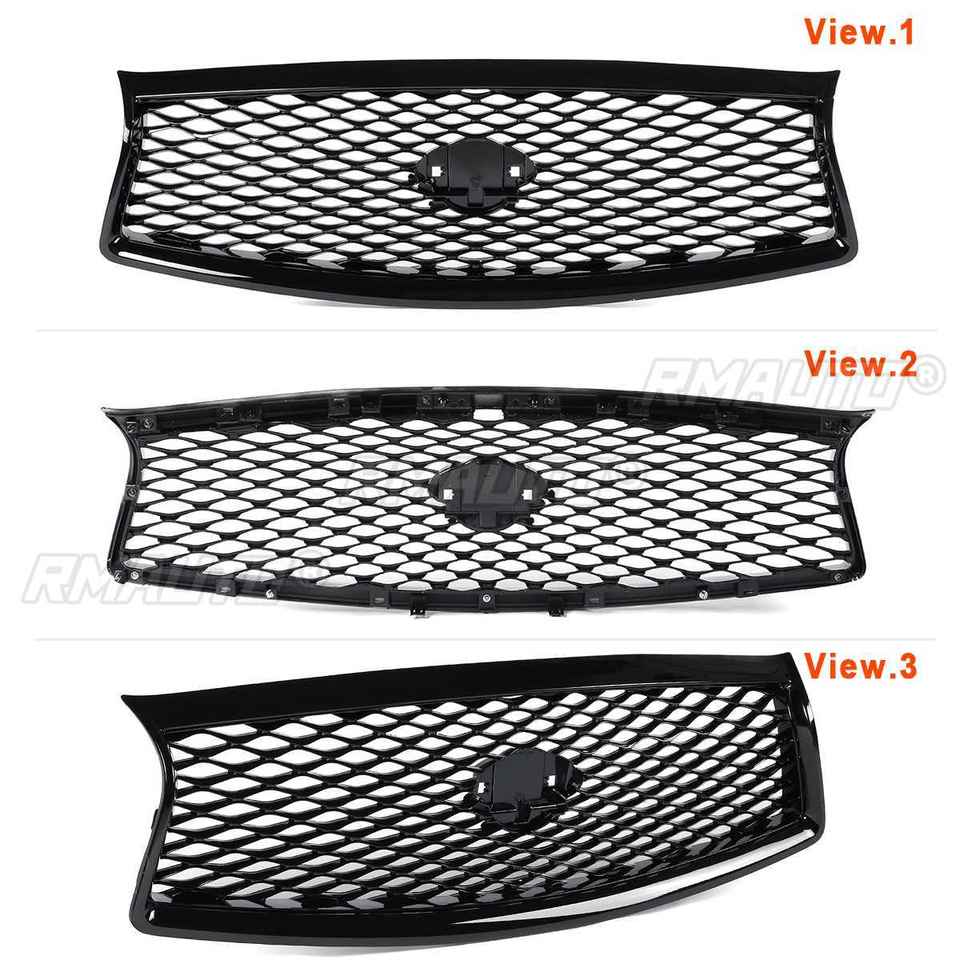 Rejilla Delantera Negra Brillante para Coche, Rejilla de Carreras, Kit de Carrocería de Repuesto, Parrilla Superior de Malla para Parachoques y Capó para Infiniti Q50 Q50S 2014-2017