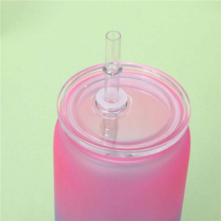 Latas de plástico brillante de 16Oz Mason Can Vaso de plástico al vacío de una sola pared con pajita y tapa