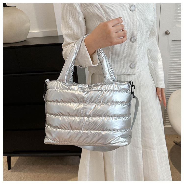 Bolso de guata de poliéster bordado a la moda brillante con cierre de cremallera, bolso de mano cruzado para mujer para Otoño Invierno