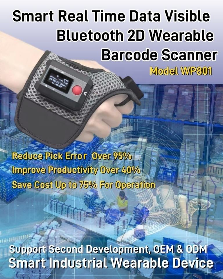 Guante DE DATOS Visible Manos libres Bluetooth 1D 2D QR Lector de código de barras Escáner de código de barras portátil para almacén inteligente Fabricación Postal
