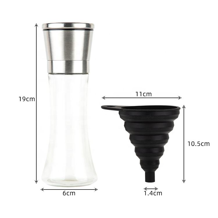 Gadget de cocina Gloway, salero de vidrio de acero inoxidable recargable, agitador de especias, molinillo grueso Ajustable, molinillo de sal y pimienta con embudo