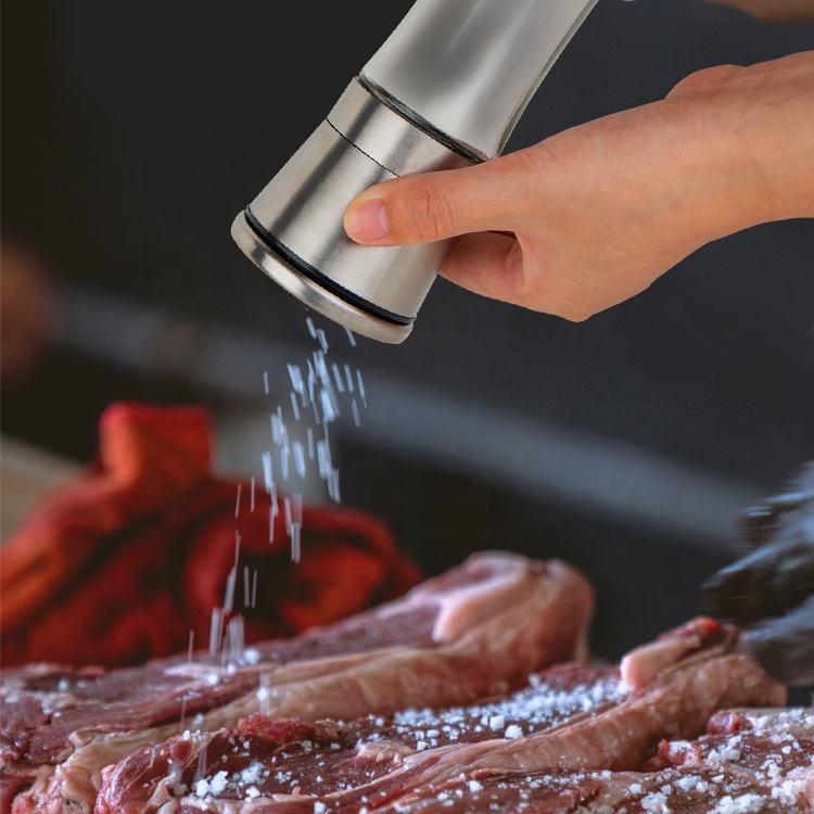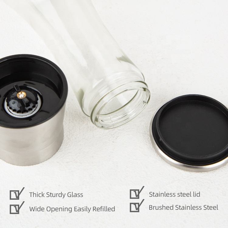 Salero y especiero de vidrio recargable de acero inoxidable