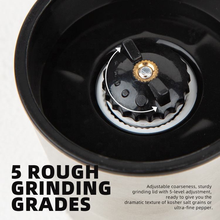Función:Ayuda a moler sal fina o gruesa y especias