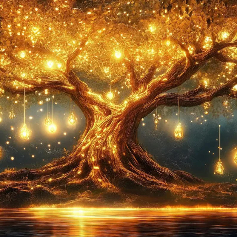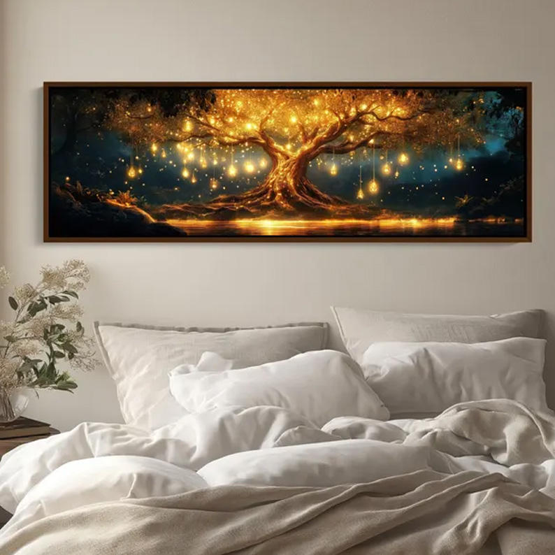 Impresión en Lienzo de Árbol Luminoso, Árbol de Luces LED de Fantasía, Arte de Pared Texturizado Extra Grande con Marco, Decoración Interior para Hoteles, Casas y Hogares