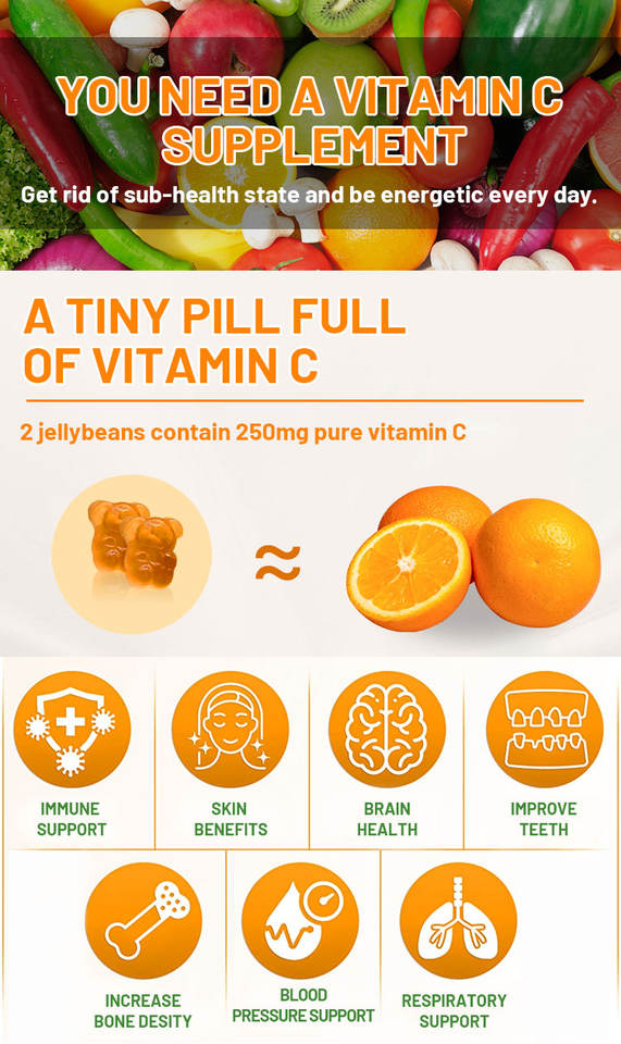 Gummies brillantes Pastillas para blanquear la piel Caramelo Vitamina C Gummies Suplementos para la piel Seguro para mujeres embarazadas Vitamina C Gummies para la piel