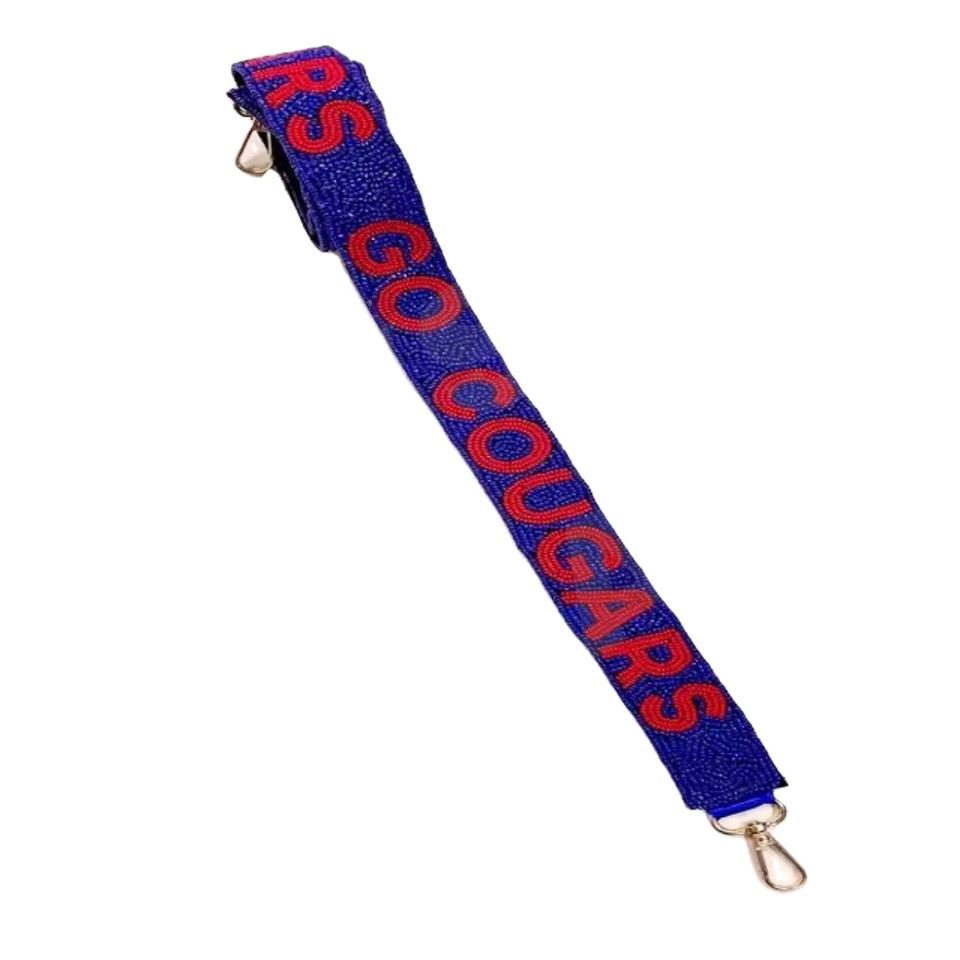 Correa de monedero con cuentas Go Cougars, correas de bolsa de cuentas de semillas de oro blanco personalizadas, correa de cuentas personalizada para bolsos