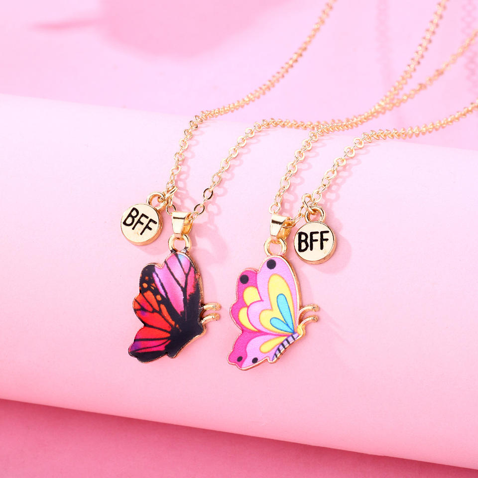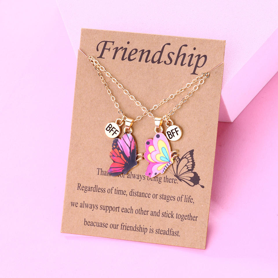 Go Party 2 uds Set Boho BFF amistad mariposa colgante collar colorido aceite goteo esmalte tarjeta collares para niñas niños