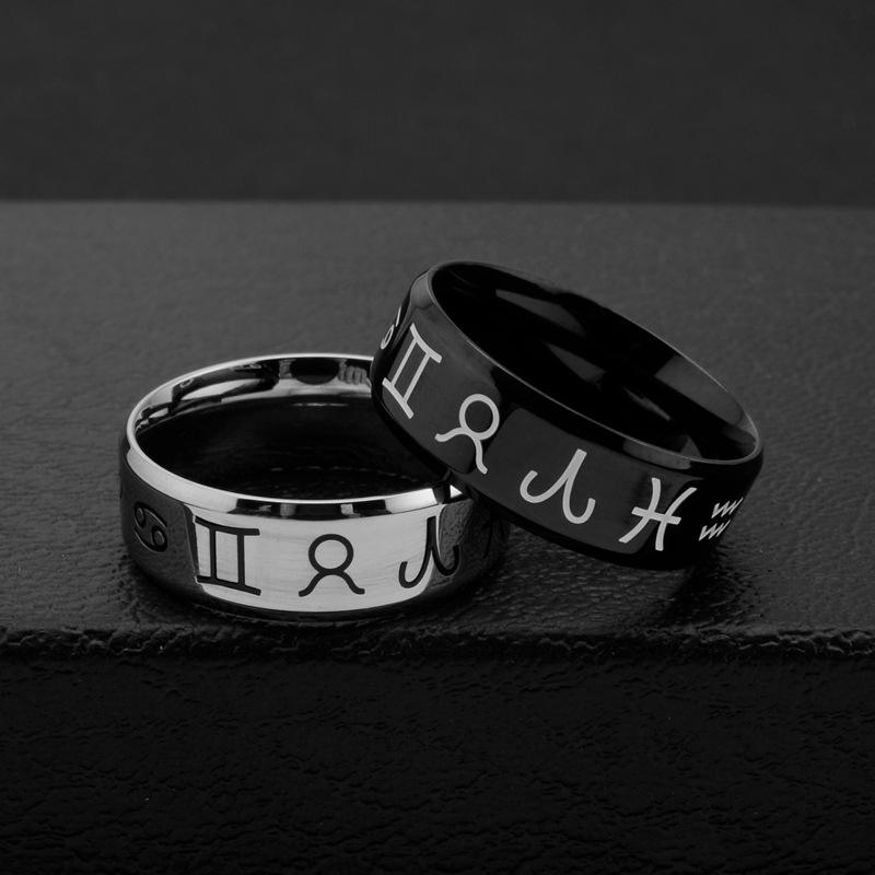 Nombre del Producto:Anillos Zodiacales Personalizados en Acero Inoxidable Negro y Plata