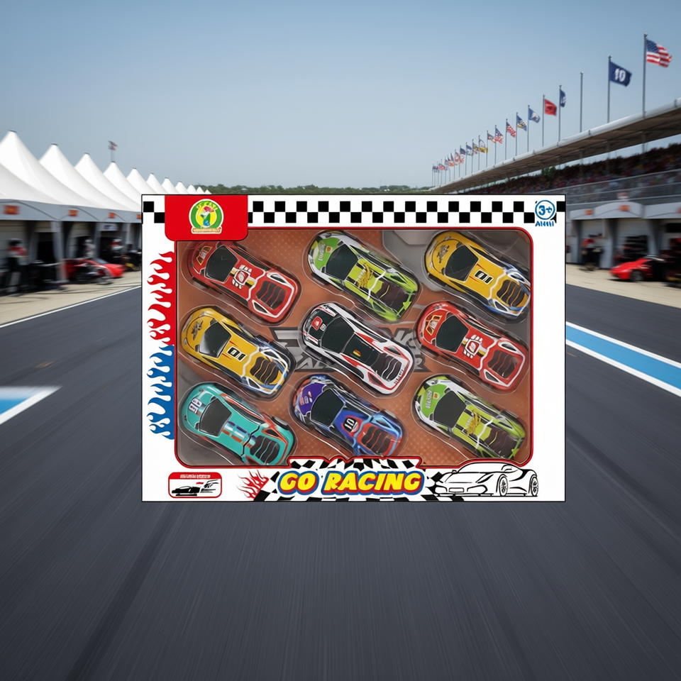 Go Racing Retrocarica 9, Set de 9 Autos de Metal Fundido a Presión, Colección de Vehículos de Juguete para Niños de 3+ Años