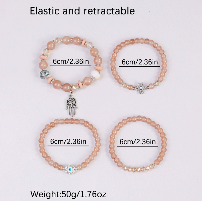 Go2boho - Juego de Pulseras de Cuentas Multicapa con Amuleto de Ojo Turco y Hamsa, Pulsera Elástica, Joyería Bohemia de Moda para Mujer, Venta al por Mayor OEM