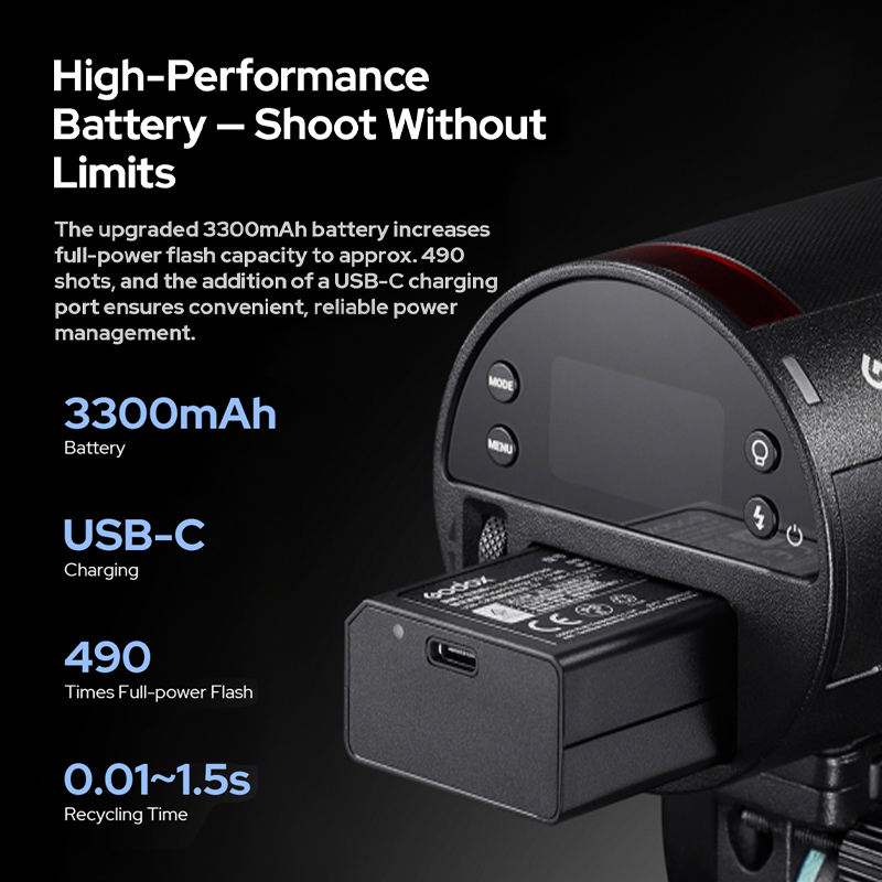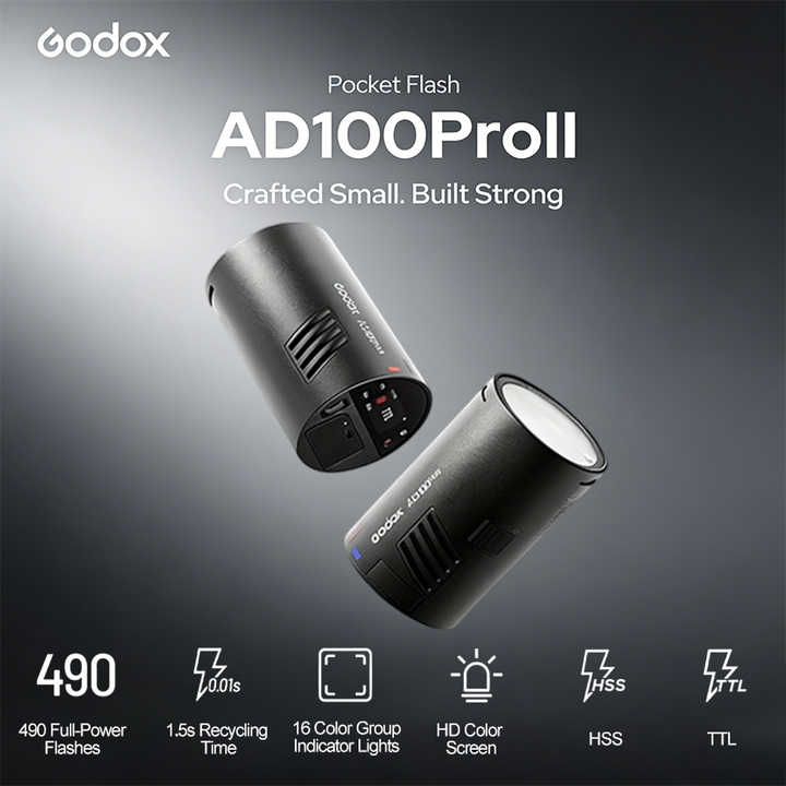 Flash de Fotografía Godox AD100 Pro II de 100 Ws, 2.4G TTL, Flash Estroboscópico HSS de 1/8000, Flash de Bolsillo con Batería de Litio de 2600 mAh