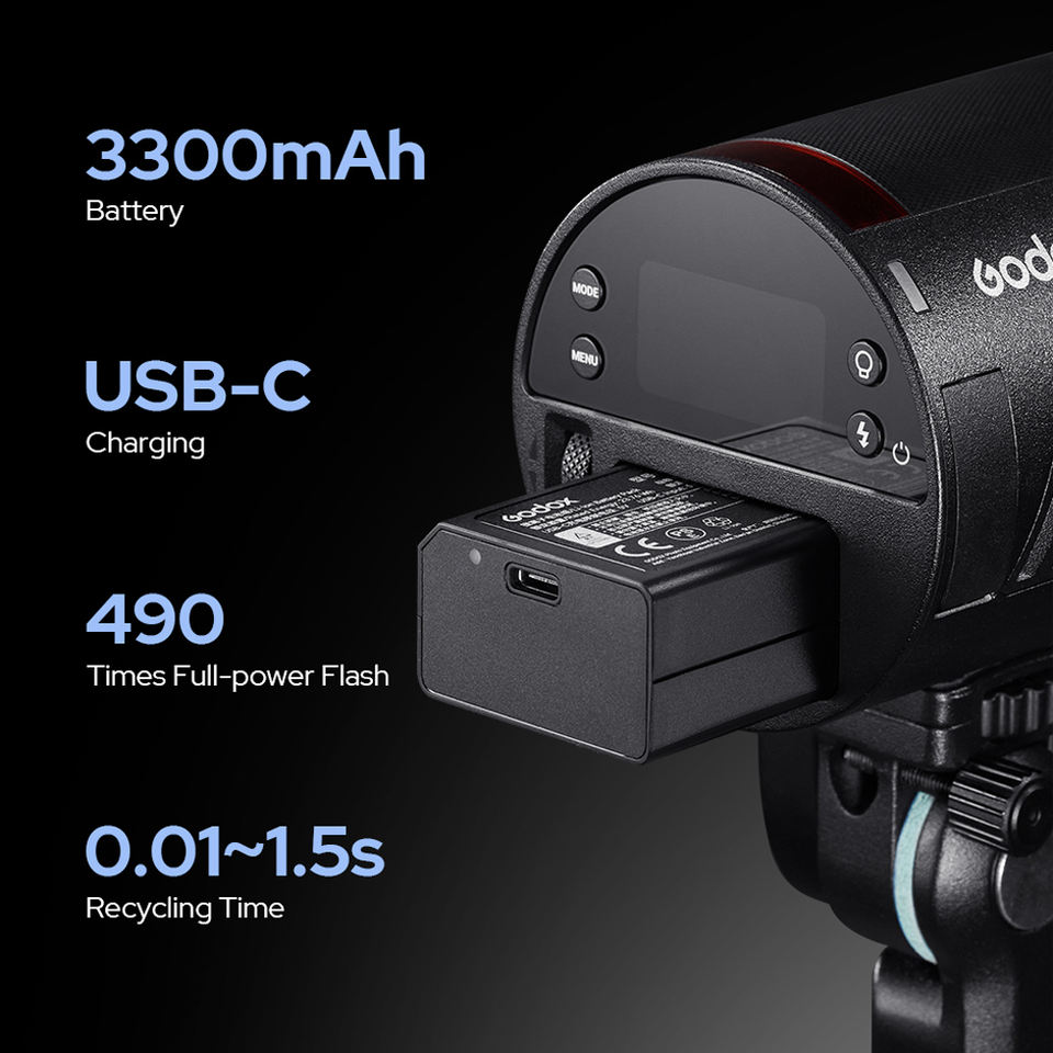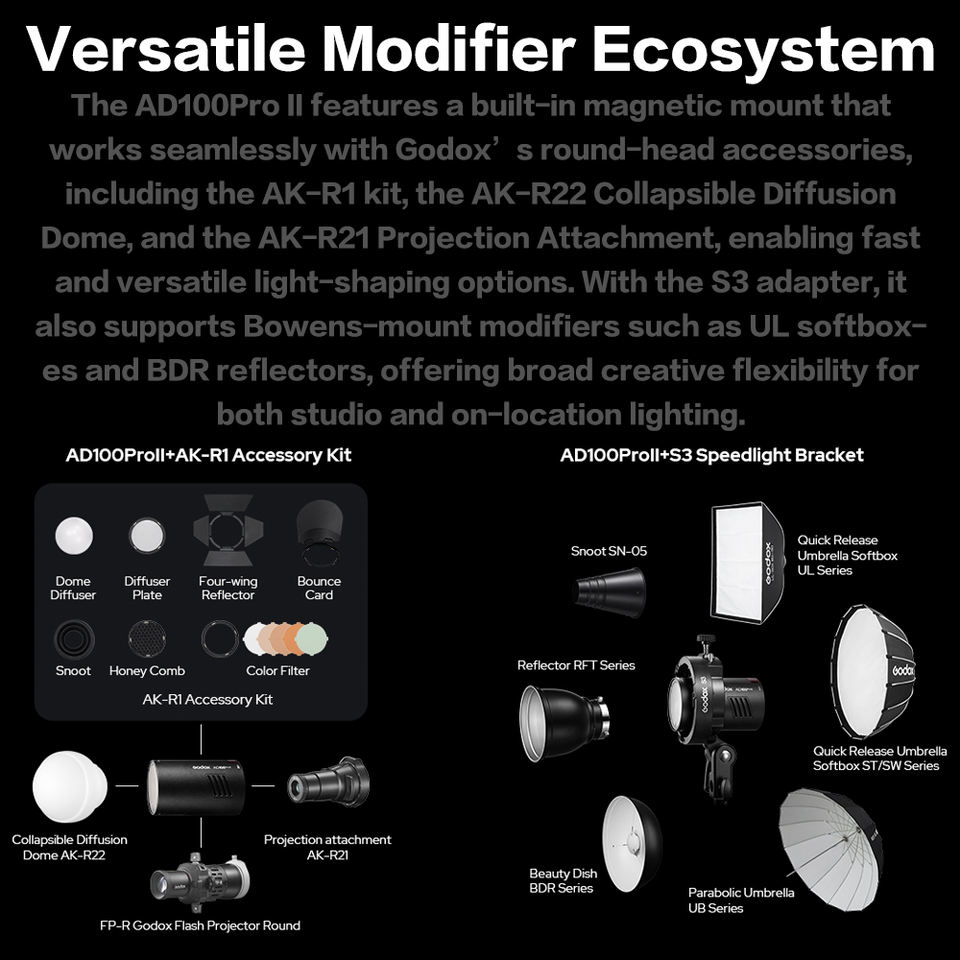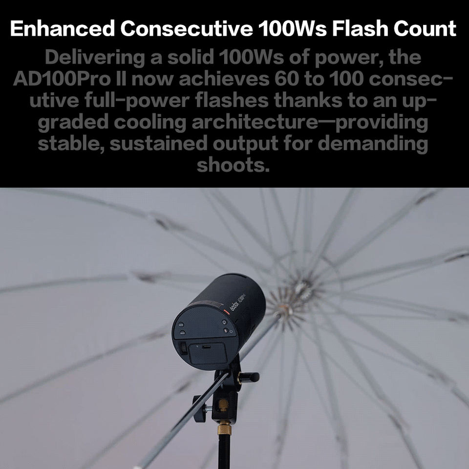 Flash para Exteriores Godox AD100 Pro II de 100 Ws, 2.4G TTL, Flash de Fotografía, Flash de Bolsillo HSS para Retratos y Grabaciones en Sitio