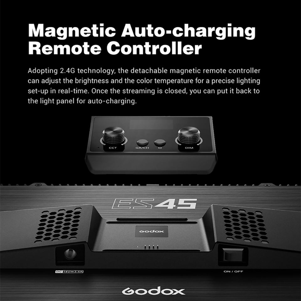 Kit de Luz LED Godox E-Sports ES45 2800K-6500K con Barra de Montaje, Aplicación y Control Remoto para Fotografía en Vivo de Juegos de Youtube y Estudio