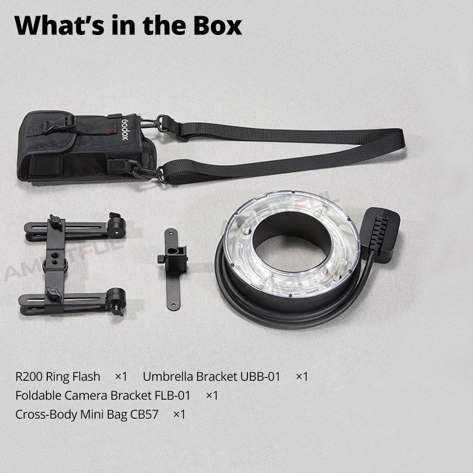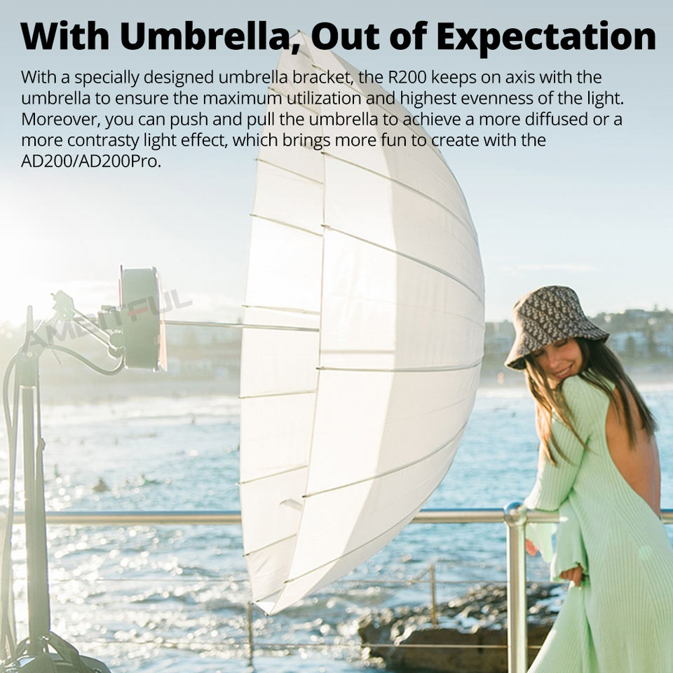 Godox R200 - Cabezal de Flash Speedlite con Anillo de Luz LED de 200 W para Cámaras Sony, Canon, Nikon, Fuji, Olympus, Flash Godox AD200 AD200Pro