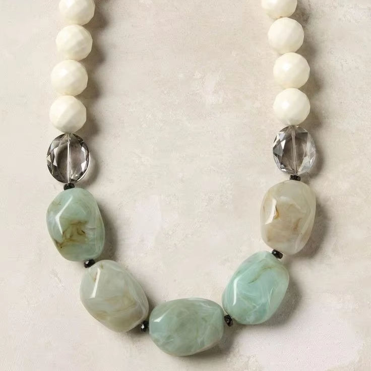 Collar grueso unisex de resina con cuentas ajustables, imitación de perlas acrílicas, ideal para fiestas y como pieza llamativa.