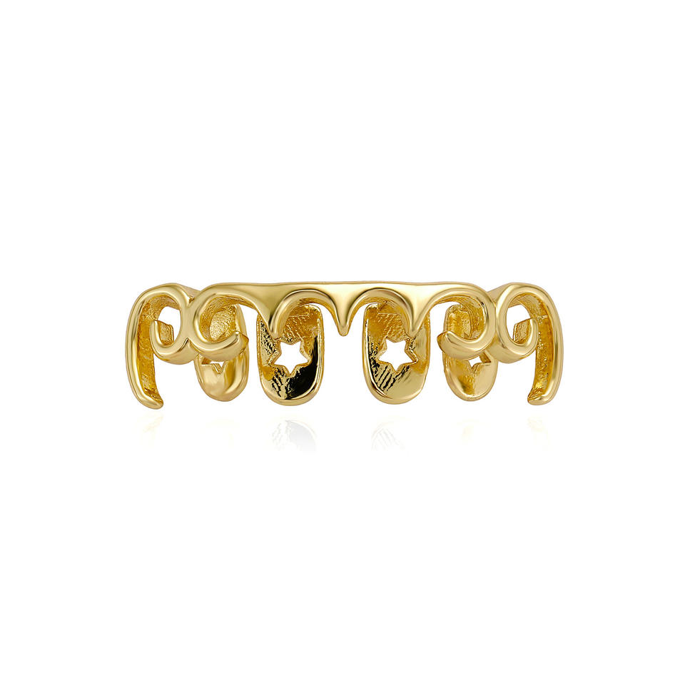 Grillz para dientes con diseño de estrellas en oro y plata, para fiestas, unisex, estilo hip hop.