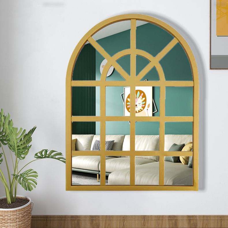 Nombre del producto:Espejo de pared con marco de hierro forjado dorado y diseño de arco de ventana.