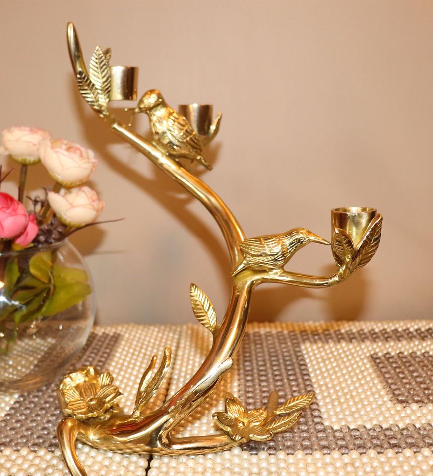 Candelero de mesa hecho a mano de diseño moderno con forma de flor de latón dorado para decoración del hogar de KSN
