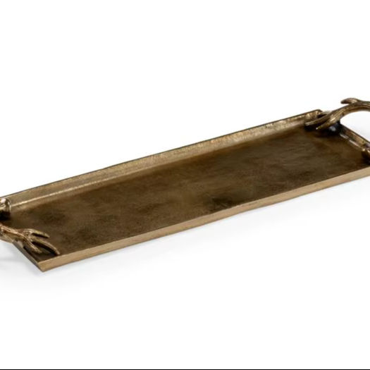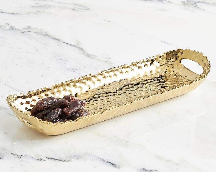 Bandeja Rectangular de Lujo con Asa de Hoja de Ajenjo en Latón Dorado, Plato Metálico para Decoración de Mesa, Frutas, Bocadillos, Uso en Restaurantes y Hoteles