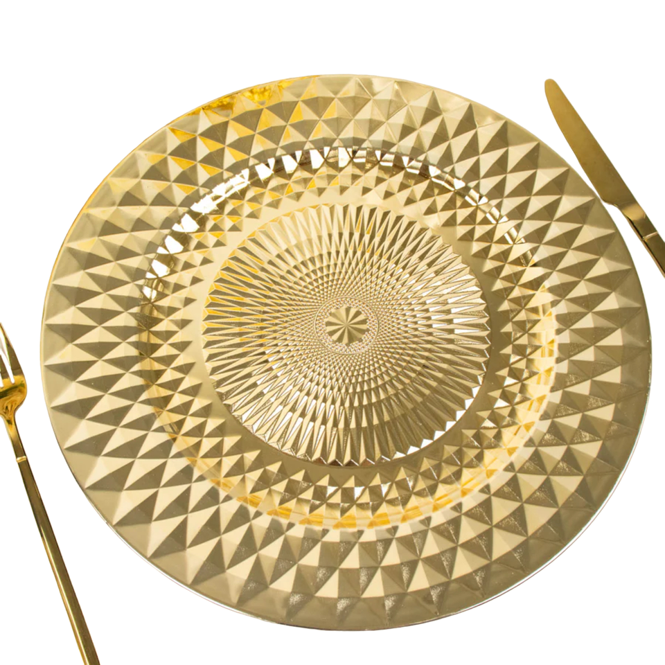 Plato de exhibición de alimentos de color dorado con diseño en relieve Plato de comida rápida de metal de la más alta calidad y placa de cargador a un precio razonable